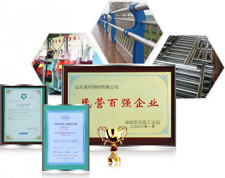 山東美特鋼材有限公司(15863566668)是常年專業(yè)從事生產(chǎn)、銷售內(nèi)外襯不銹鋼復(fù)合管,不銹鋼復(fù)合管護(hù)欄的廠家,公司擁有完整的不銹鋼及不銹鋼復(fù)合管生產(chǎn)線24條,以及各類金屬加工設(shè)備多套(數(shù)控等離子切割機(jī)、沖床、冼床等),公司還擁有獨(dú)立的鍍鋅和噴塑車間,良好地處理好鋼板表面效果。 公司優(yōu)勢(shì):一、專業(yè)性強(qiáng)1.專業(yè)設(shè)計(jì)、制作和安裝不銹鋼復(fù)合管工程及金屬欄桿工程。集設(shè)計(jì)、生產(chǎn)、銷售與安裝為一體的完整體系。2.專業(yè)應(yīng)于:橋梁欄桿、市政建設(shè)、景觀護(hù)欄、體育器材、車輛機(jī)構(gòu)、紡織機(jī)械、醫(yī)療設(shè)備等二、質(zhì)量過(guò)硬1.通過(guò)IS09001:2000質(zhì)量體系認(rèn)證2. 獲得“全國(guó)質(zhì)量、服務(wù)、信譽(yù)AAAA及”企業(yè)稱號(hào),“中國(guó)綠色環(huán)保建材產(chǎn)品”,“中國(guó)優(yōu)質(zhì)建材產(chǎn)品”…